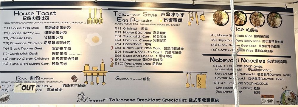 Luxweet Bakery Cafe - Taiwanese Breakfast Specialist Menu